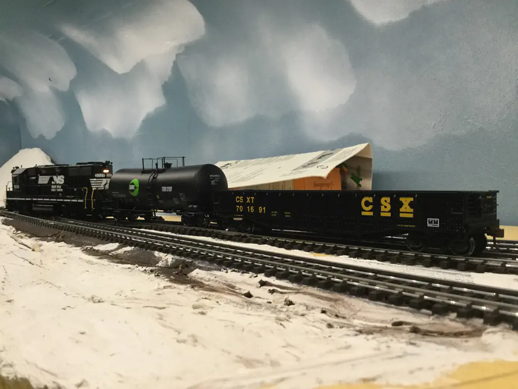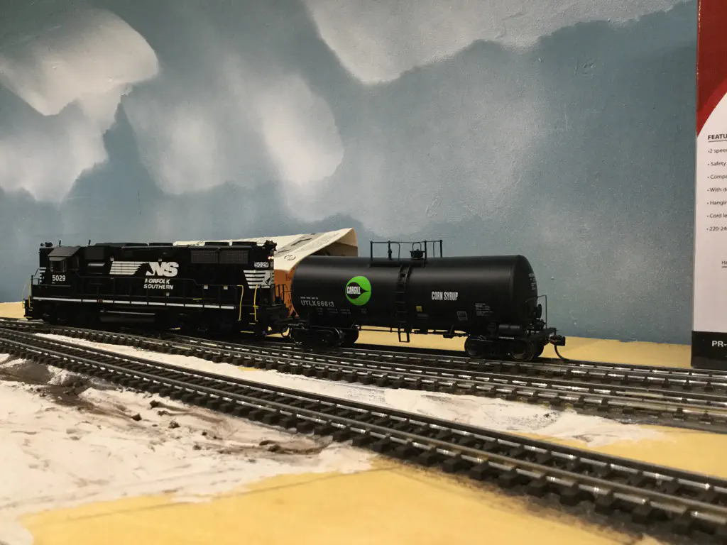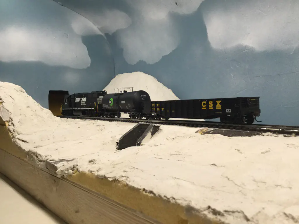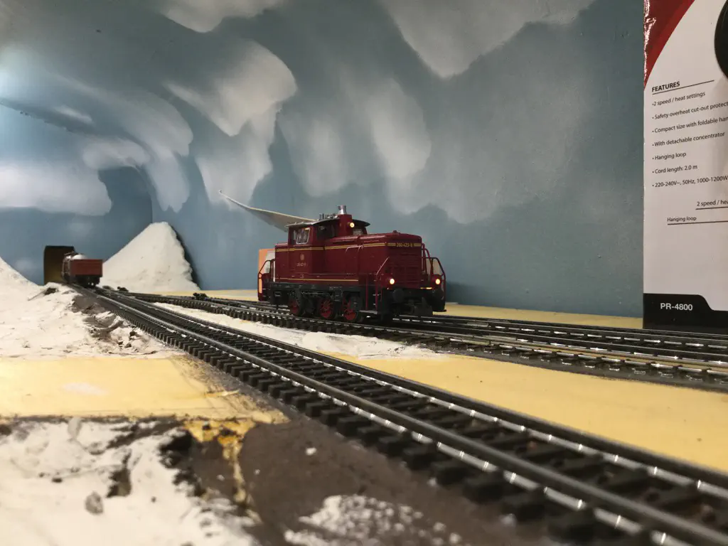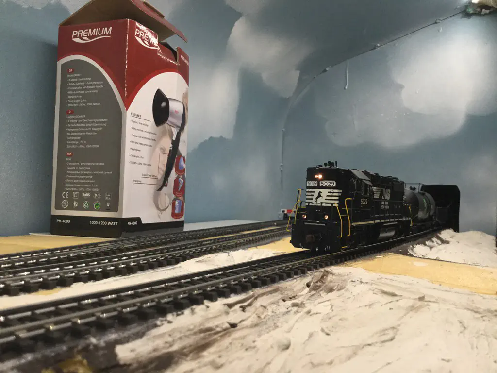 I was quite satisfied with the results and fixed the LEDs in place. After the installation I could not resist and had to unpack my lovely Athearn Genesis GP38-2 and switch some cars. The GP38-2 runs good and sounds great. I used Märklin K-Track with long turnouts. These can be used for the typical “Punktkontakt” (Pukos, third rail in dots) AC locomotives but it can also be used for DC locomotives. Sadly not all DC locomotives can cope with the “Pukos” at the turnouts as they are higher than the outer rails of the track to prevent any shorts. Sadly this locomotive seems to lock up at the Pukos with the couplers. So I could not enjoy a smooth run but nevertheless I am motivated to get this project done and proceed with an US switching layout as my next project.