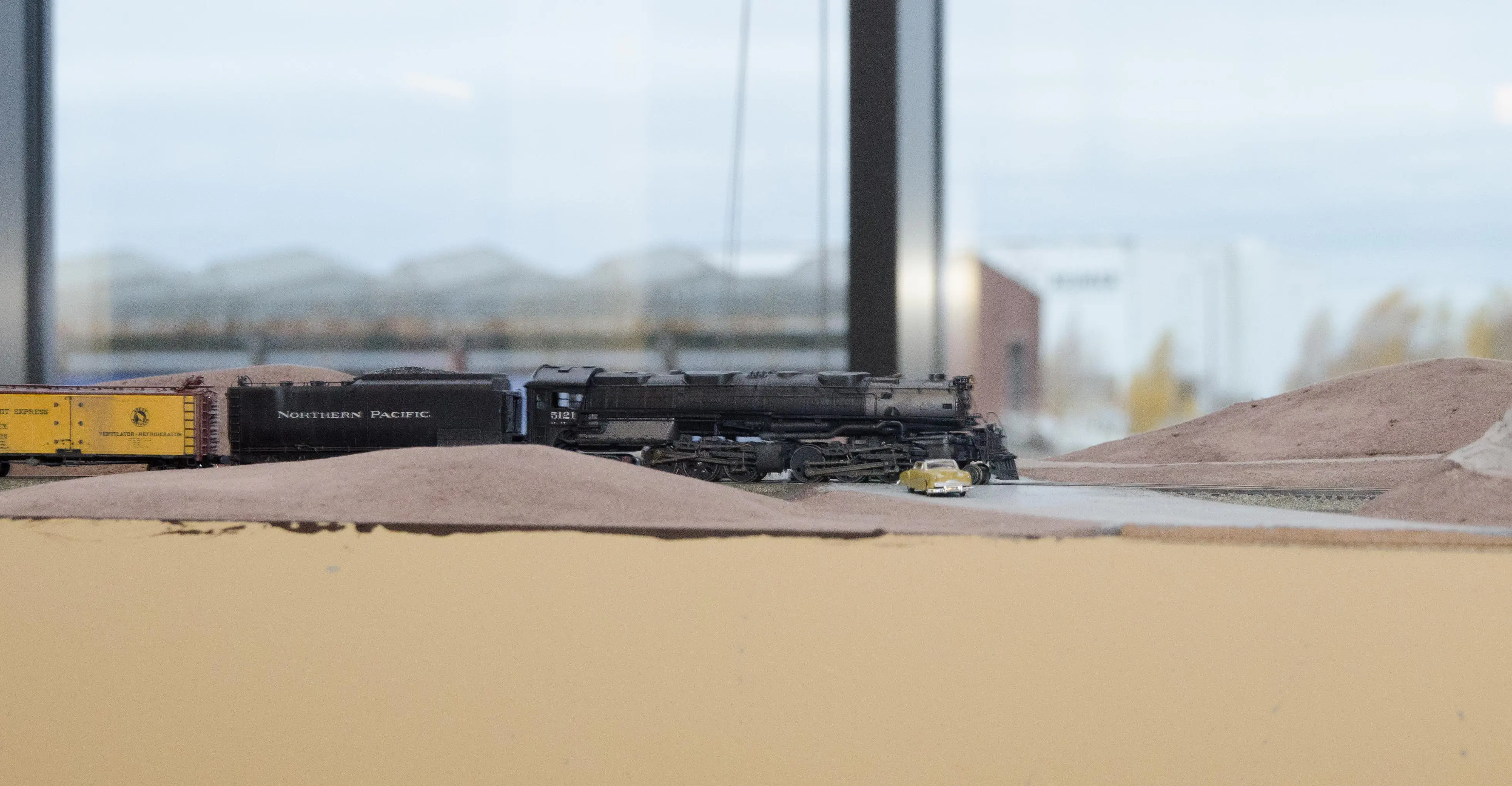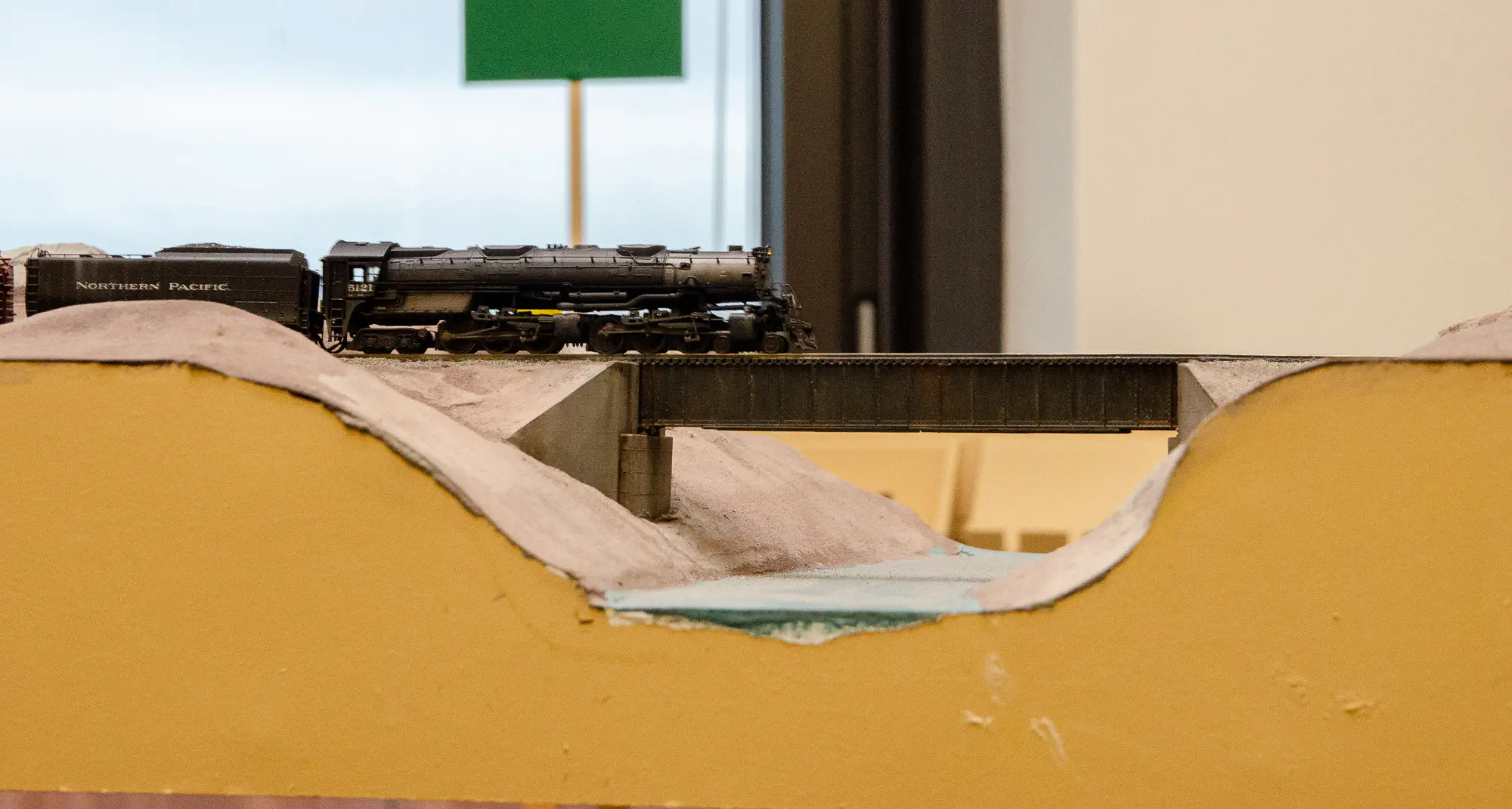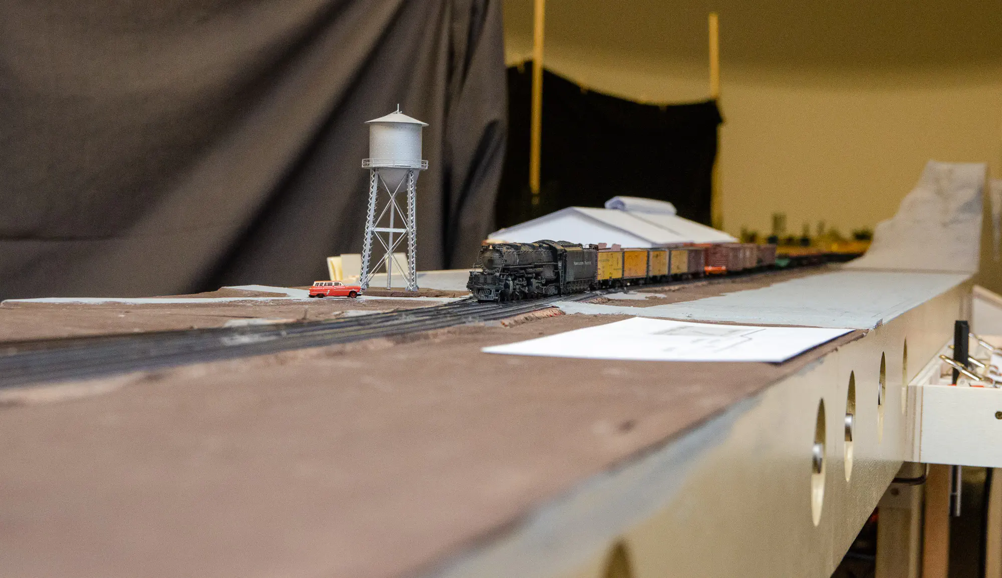 After woodworking it was time time to add ballast to the track and cover the plywood pacific with something that does a better job in imitating nature.