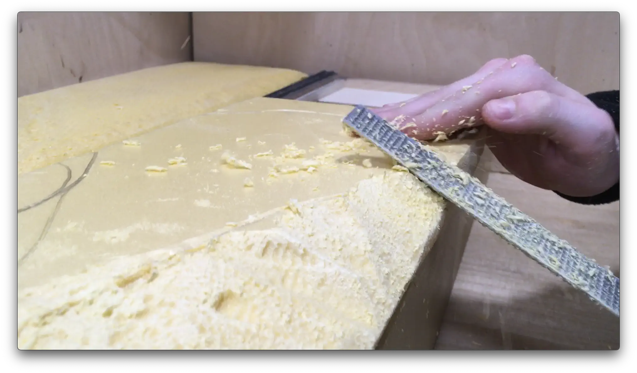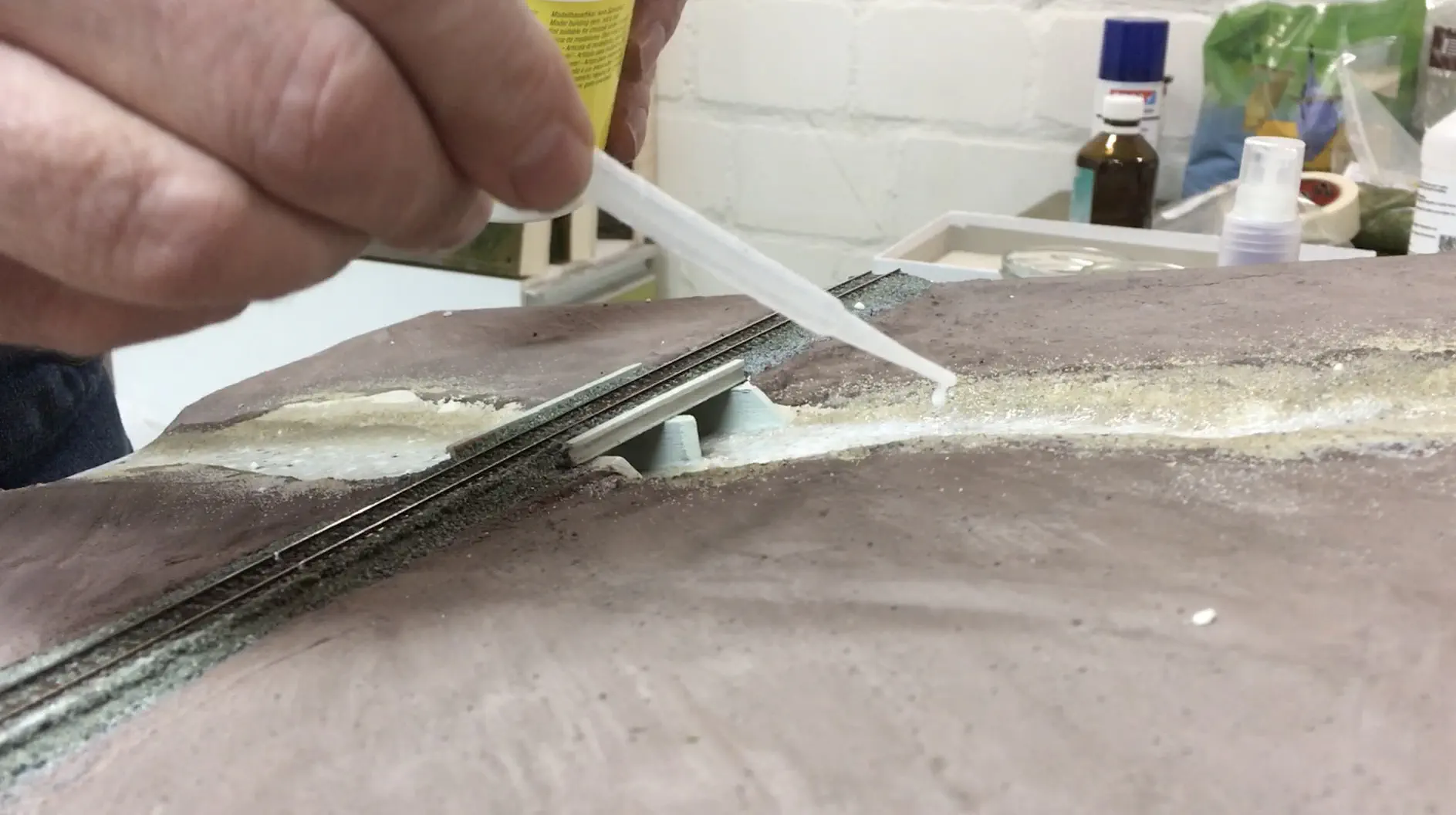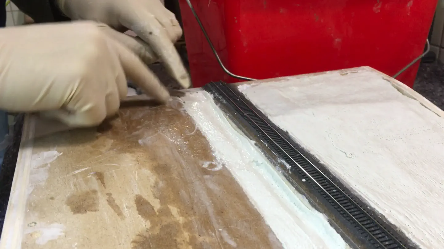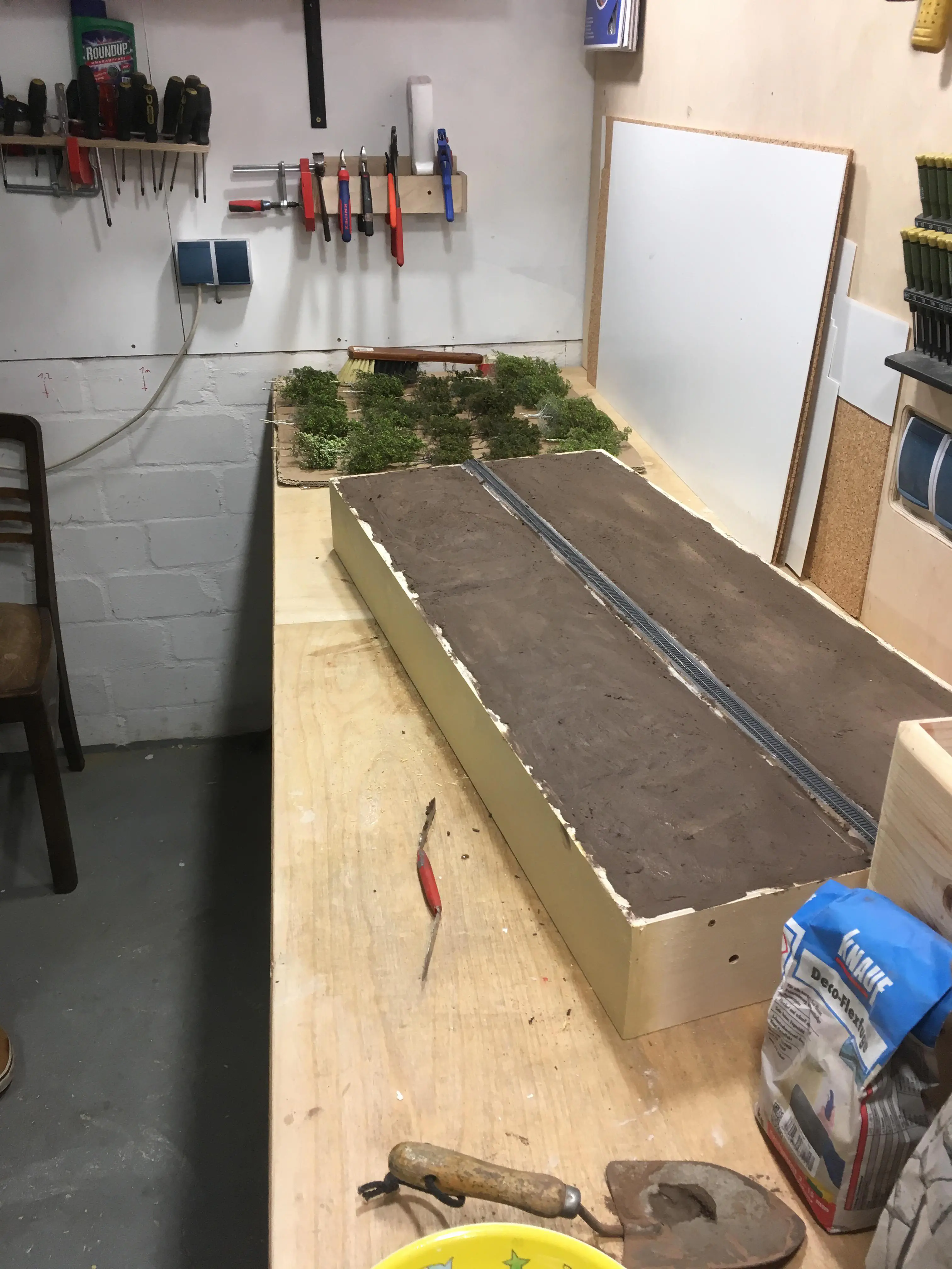 Dirk built the base for the scenery using the trusty plaster over cardboard-mesh method.Insulation-Foam and Joint-Filler