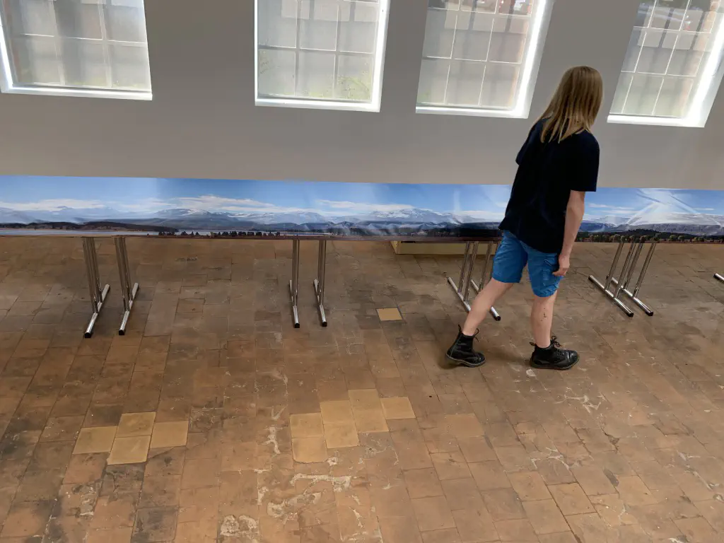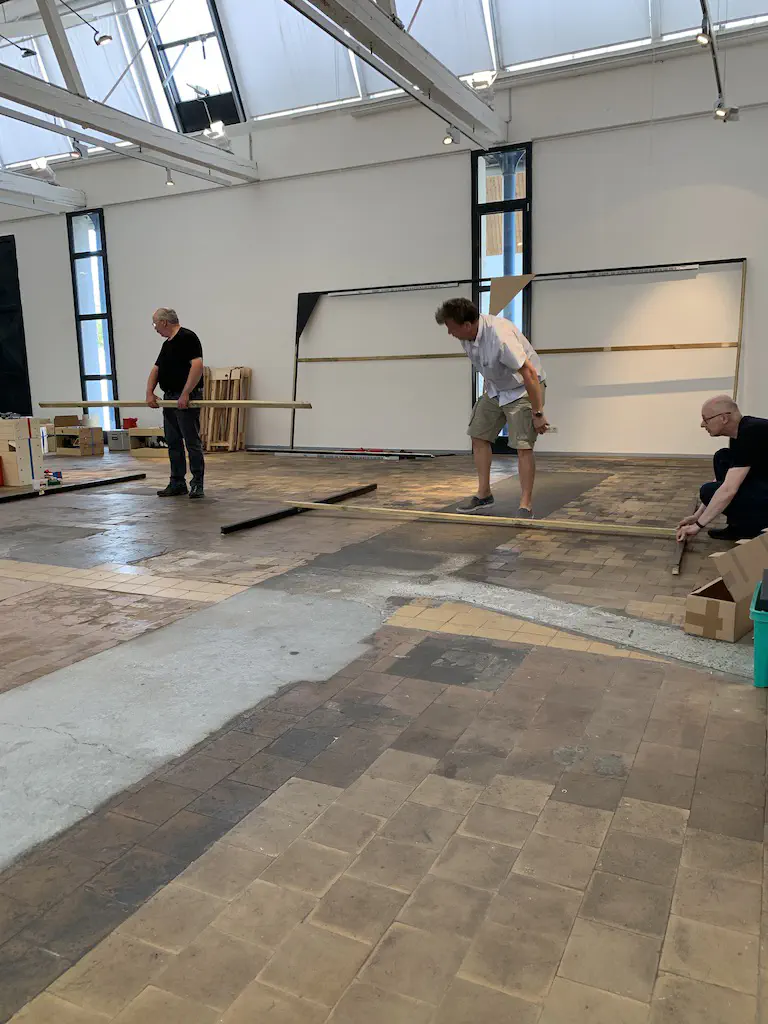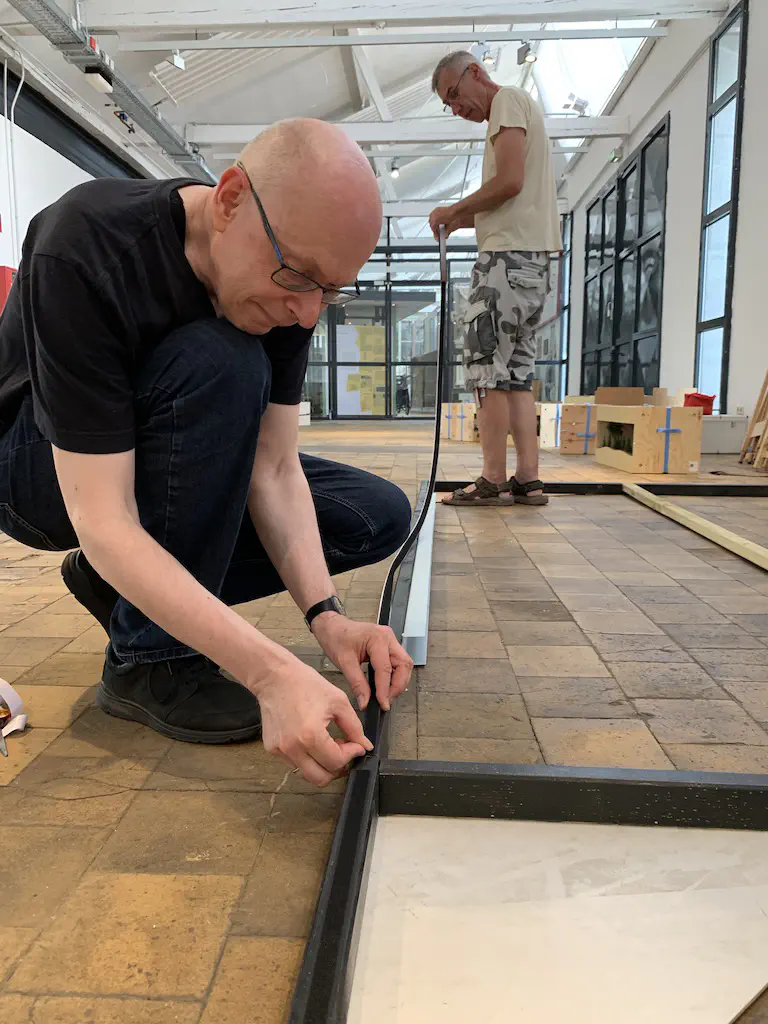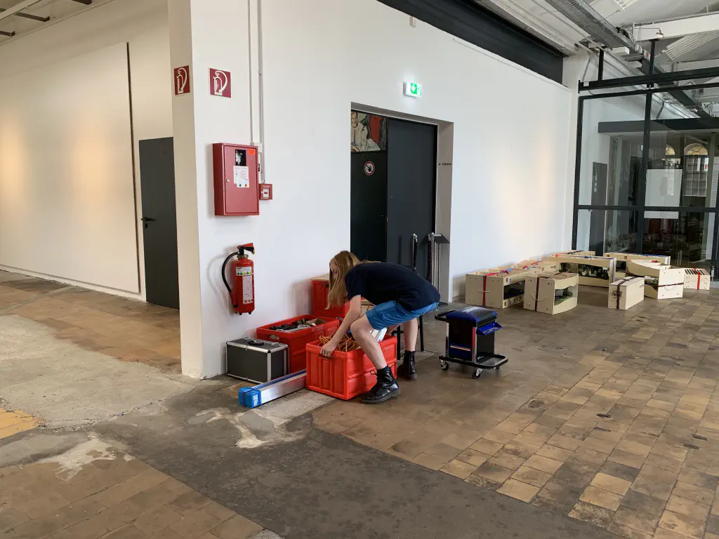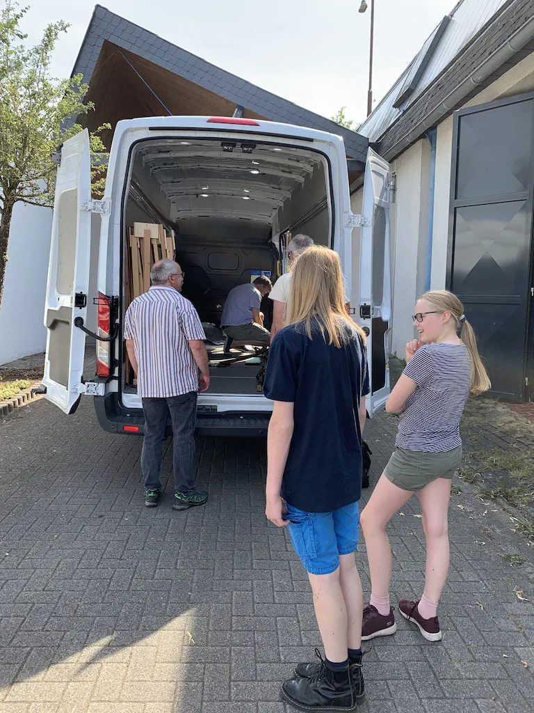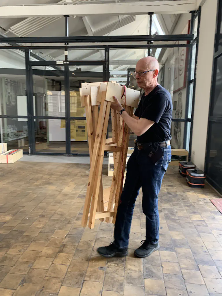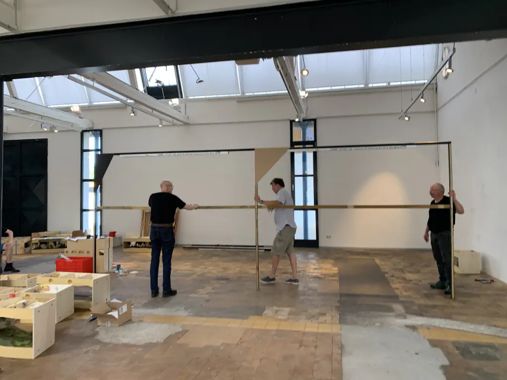 Early setup: Unload and carry everything into the room.In July we setup the exhibition layout and added a small branch to have further options for the operations. Only eight people were involved, including my kids which spent most of the time using my stream-on flat rate and watched YouTube or Netflix. But they also rand some trains and my son even had the chance to dispatch during one of the sessions. The backdrop is assembled for the first time.After spending the first day with setup and preparations, we had three days of nice, relaxed operations. The layout consists of a loop which is not used as such. We decided to partition the single fiddle yard in the center into two different locations: Parkwater Yard and Hillyard. Thus we had a point to point layout. To travel from Parkwater to Hillyard a train has to take the Wye into Hoquiam, pass Mesa, Sussex and Cascade and make a turn right through the other track of the Wye. This gave us a nice mainline run of about 30 meters.