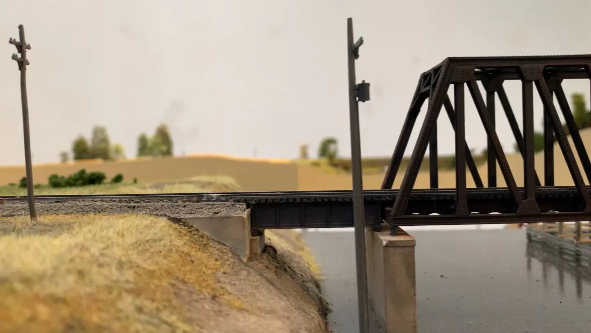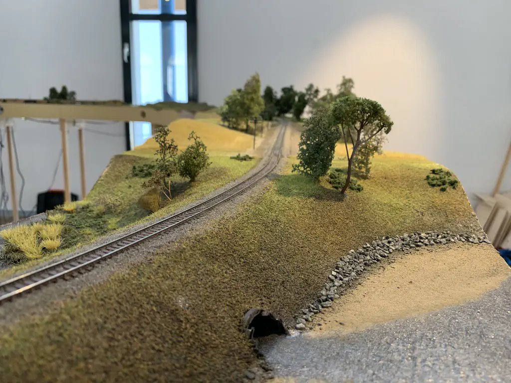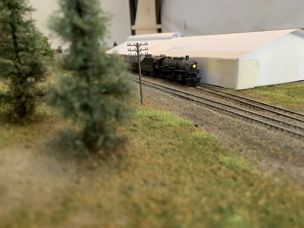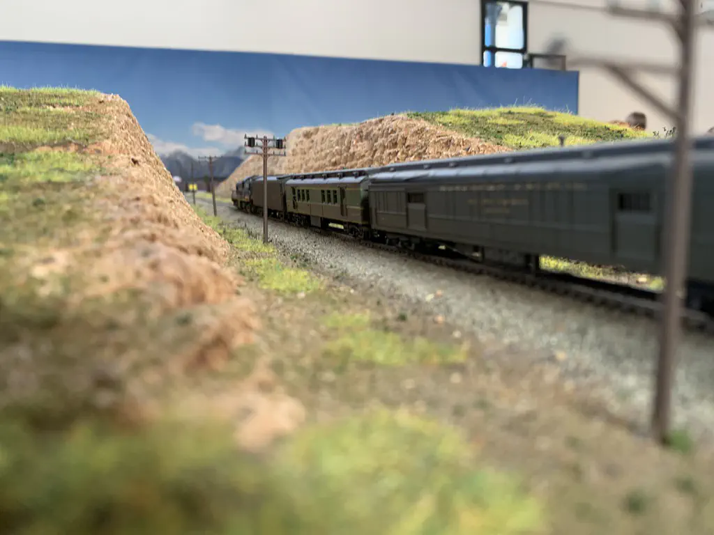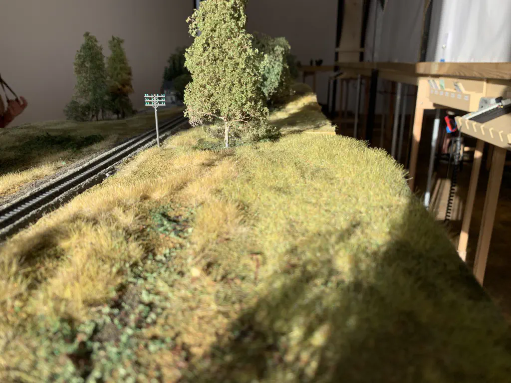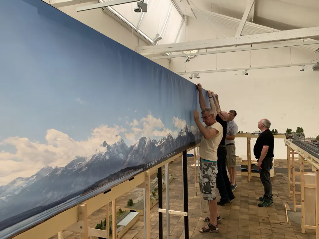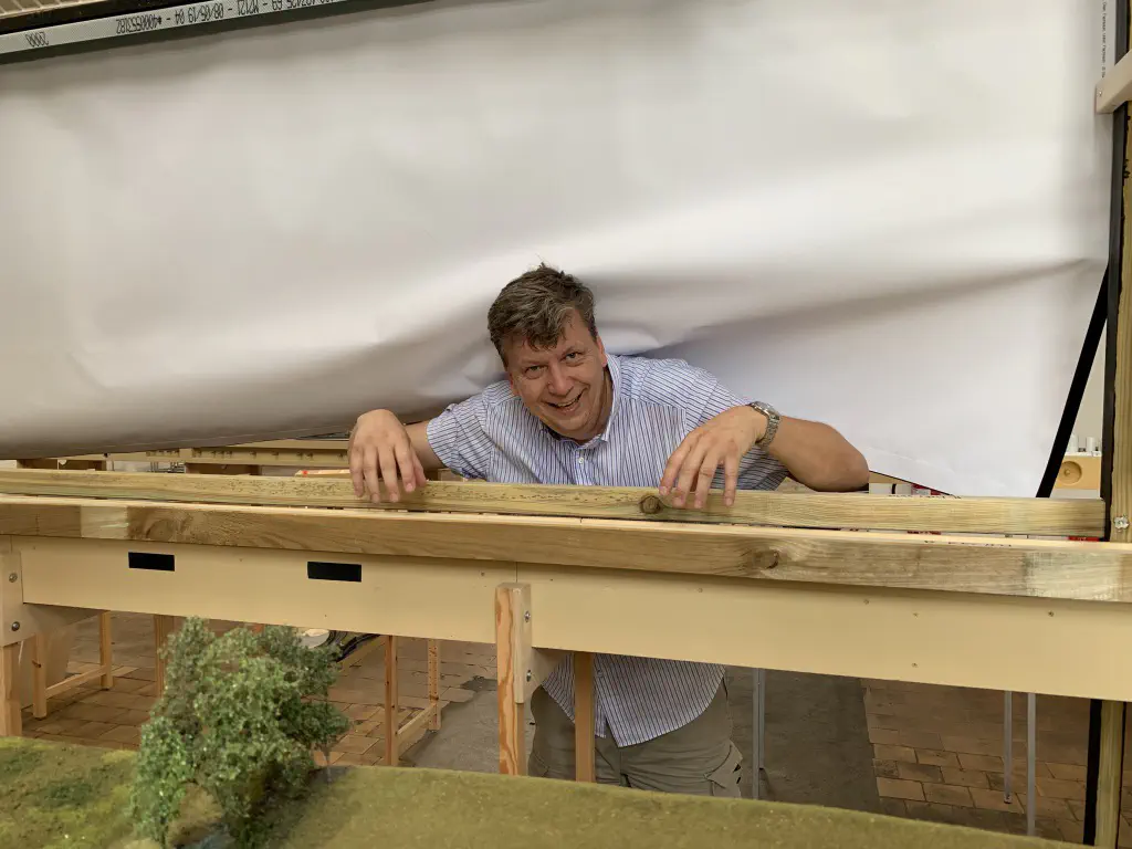 In October 2019 we want to show a layout during the US-Modellbahn-Convention in Rodgau. In the FREMO americaN group we build modules for operations. Showing the modules at an exhibition or convention is not our primary intention, but we found out that we could build an oval layout with some modules and only needed two small adapters to make it all fit. That’s what we did. Dirk extended his fiddle yard (Parkwater) to a length of six meters. Additionally he built a frame to hide the yard between to six meter long backdrops Peter created and had printed on truck tarpulin. My job was simple: finishing my six meter long module Cascade and build all required structures. No big deal ;o)