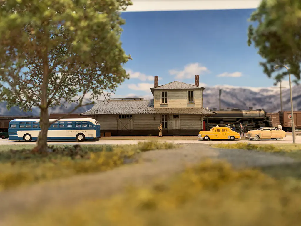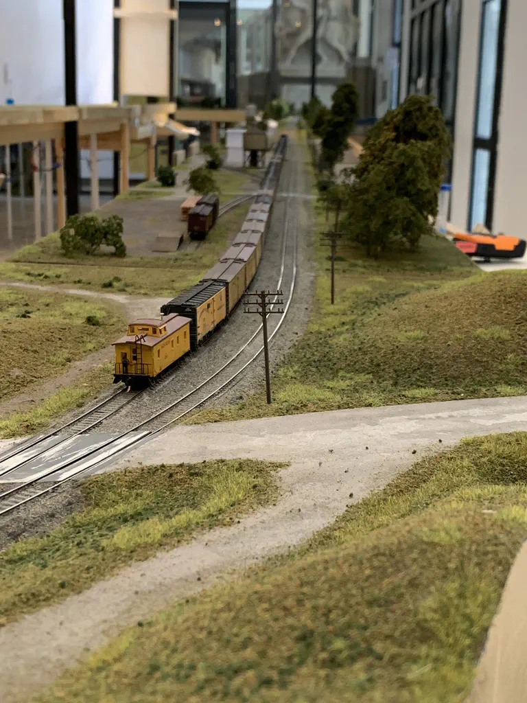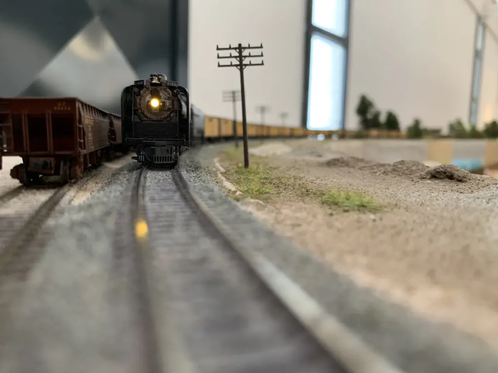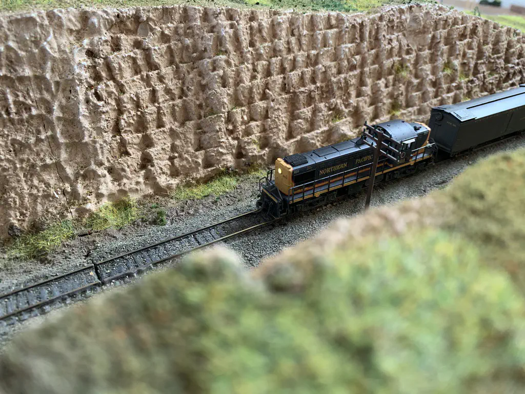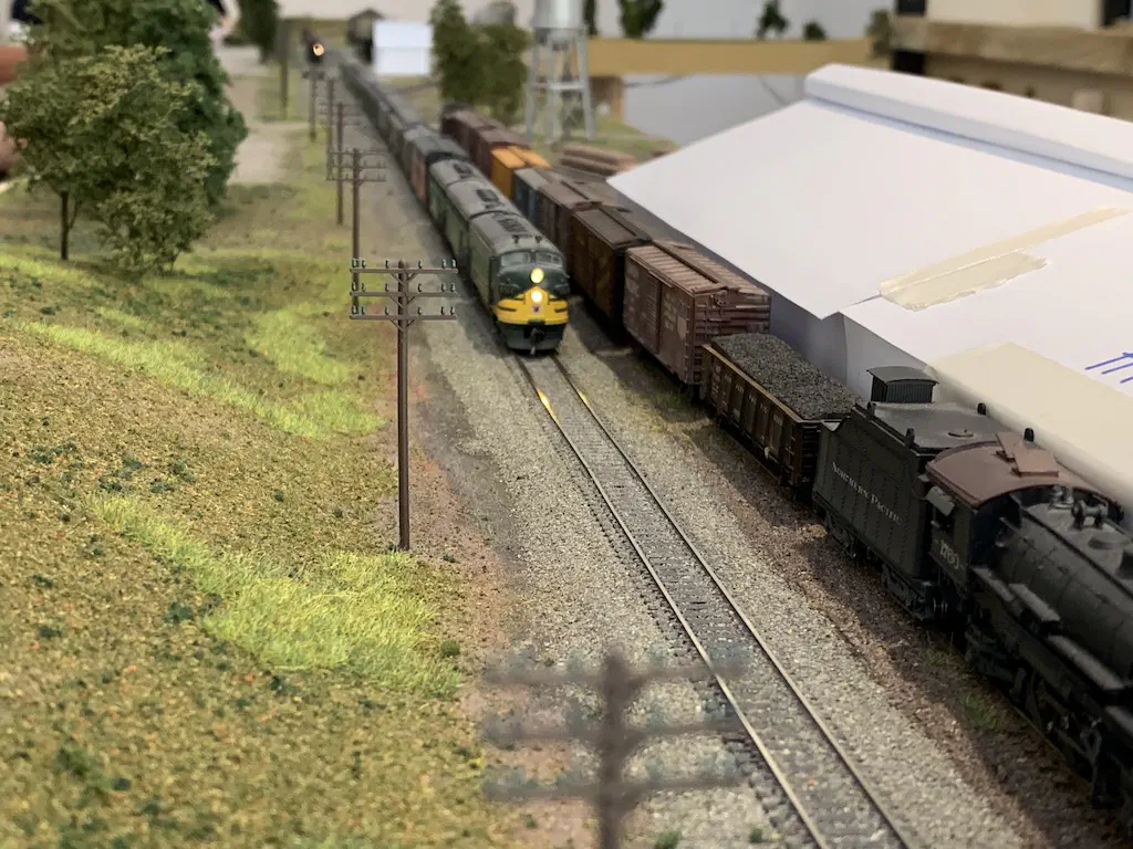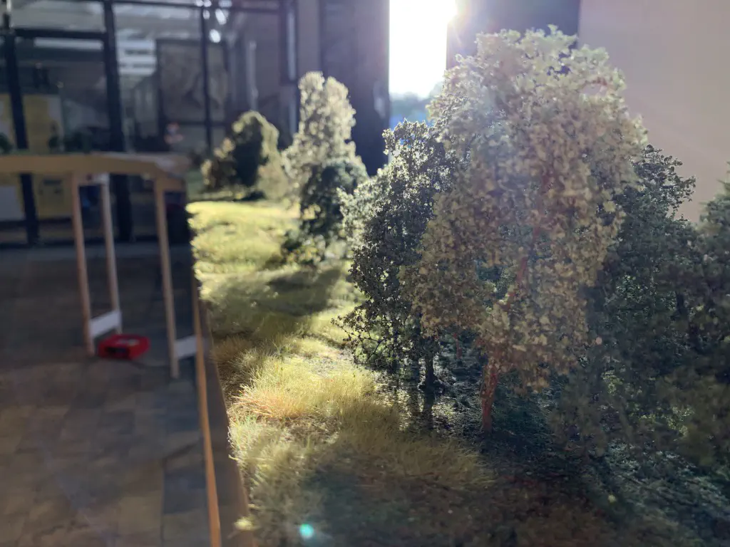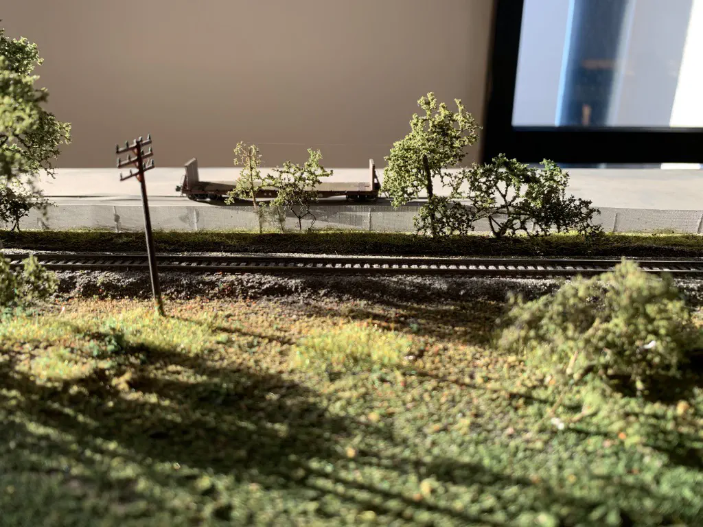 In October 2019 we want to show a layout during the US-Modellbahn-Convention in Rodgau. In the FREMO americaN group we build modules for operations. Showing the modules at an exhibition or convention is not our primary intention, but we found out that we could build an oval layout with some modules and only needed two small adapters to make it all fit. That’s what we did. Dirk extended his fiddle yard (Parkwater) to a length of six meters. Additionally he built a frame to hide the yard between to six meter long backdrops Peter created and had printed on truck tarpulin. My job was simple: finishing my six meter long module Cascade and build all required structures. No big deal ;o)