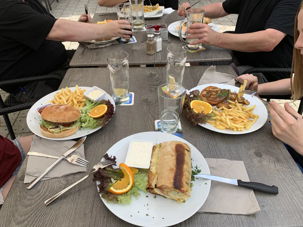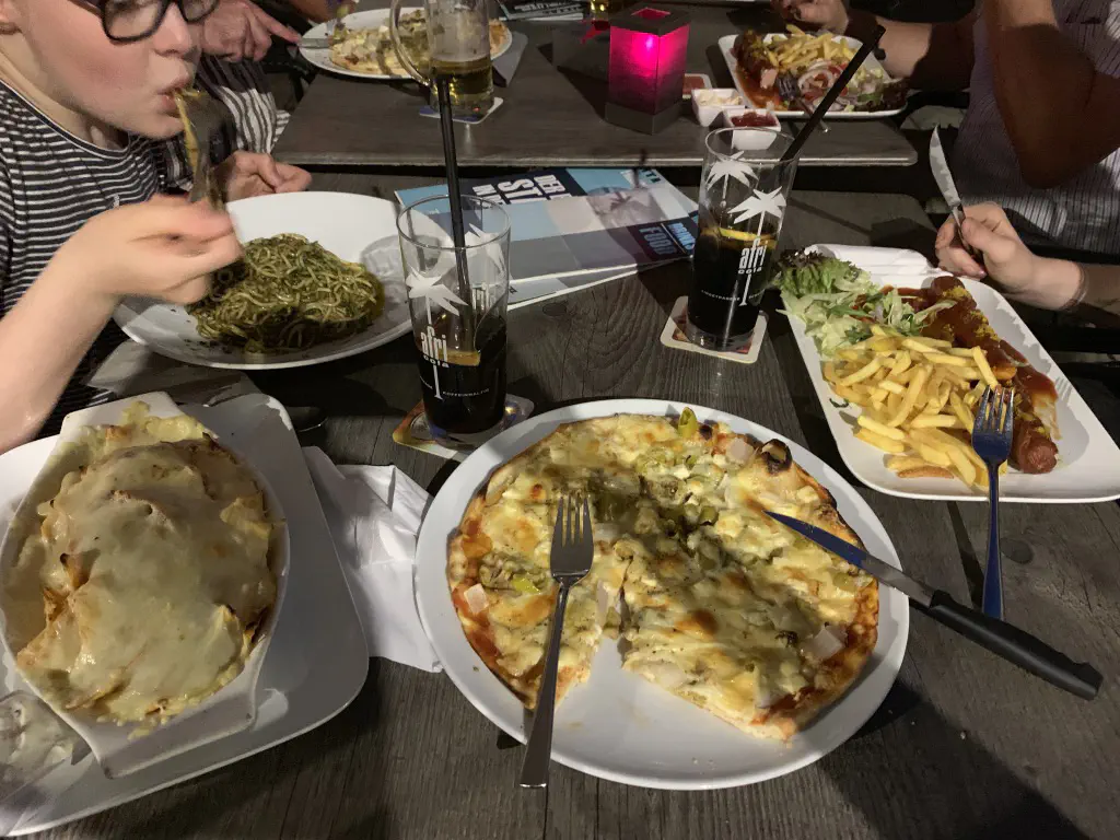 Last but not least: Food. At least once a day – mostly for dinner – we visit a local restaurant. In this case the magic words were: “Wir überbacken das.” (We escallop it).