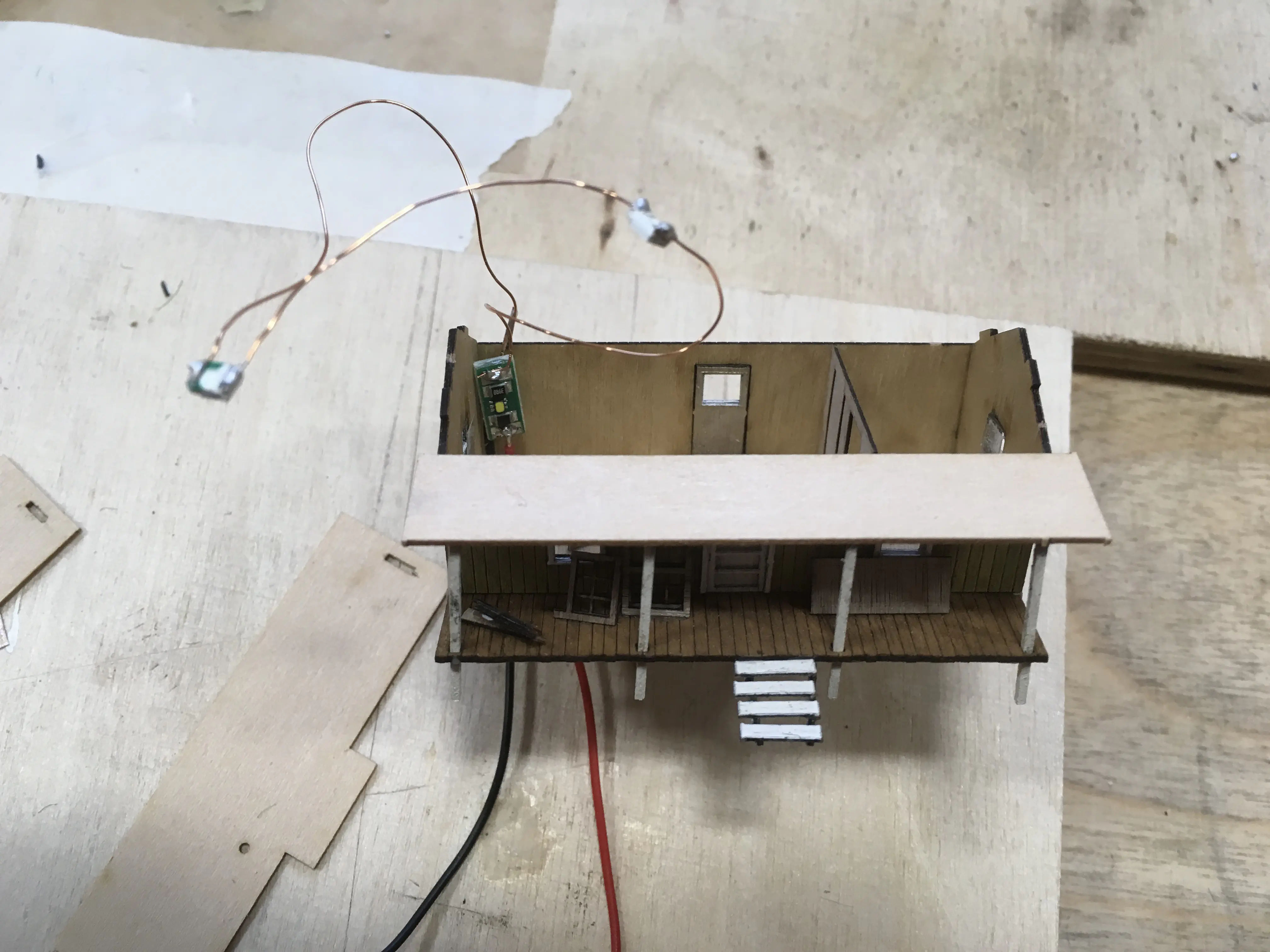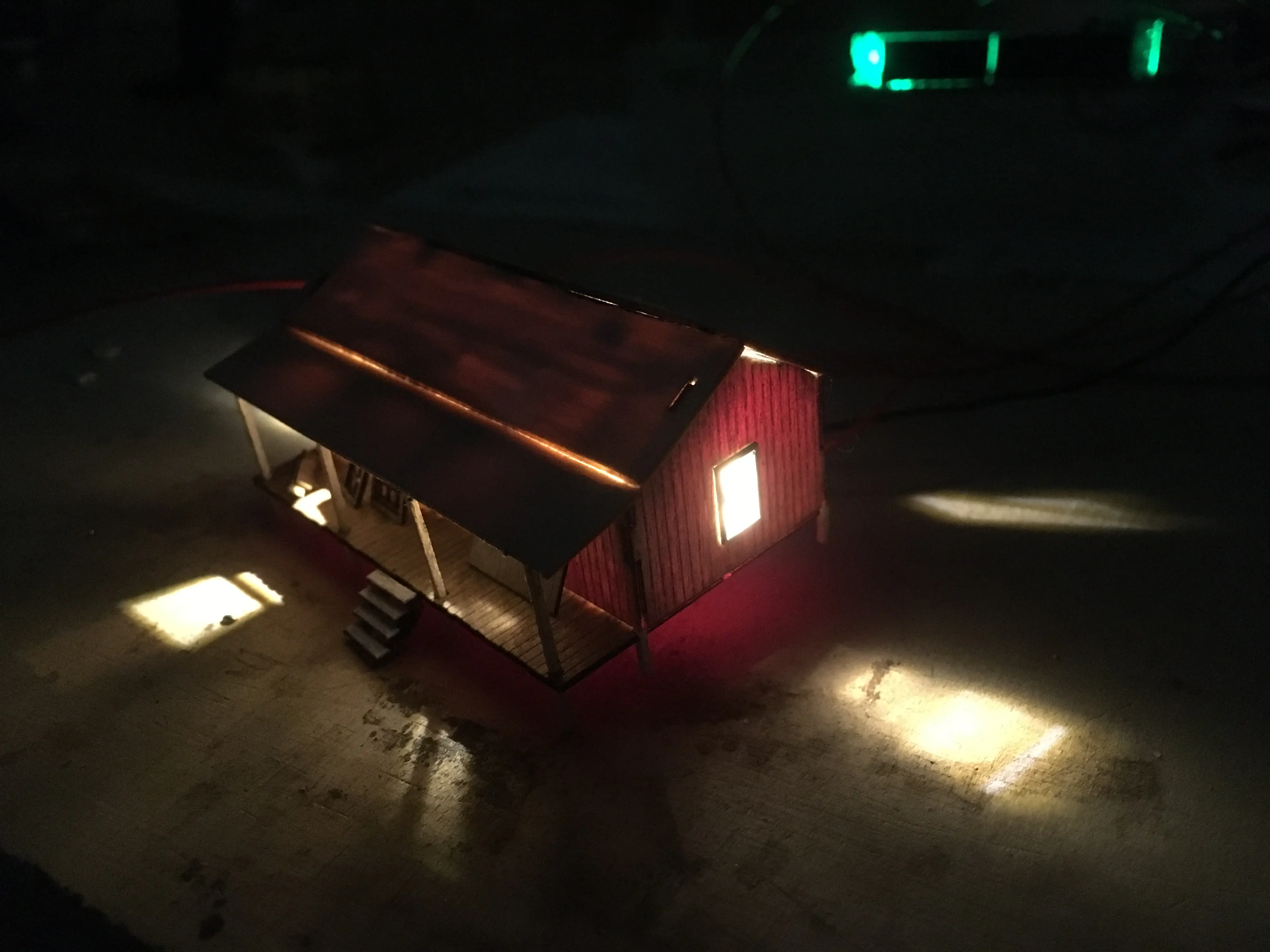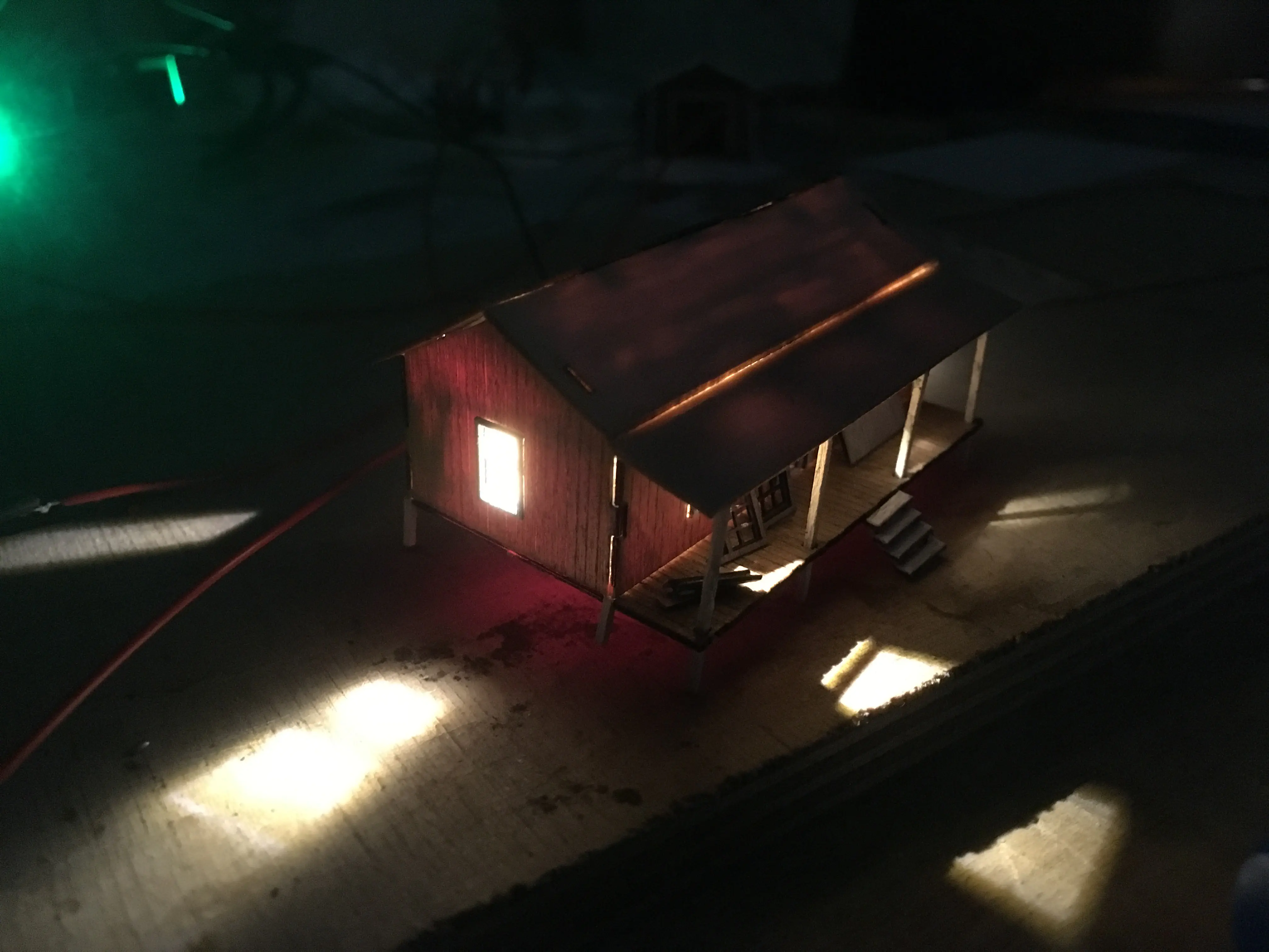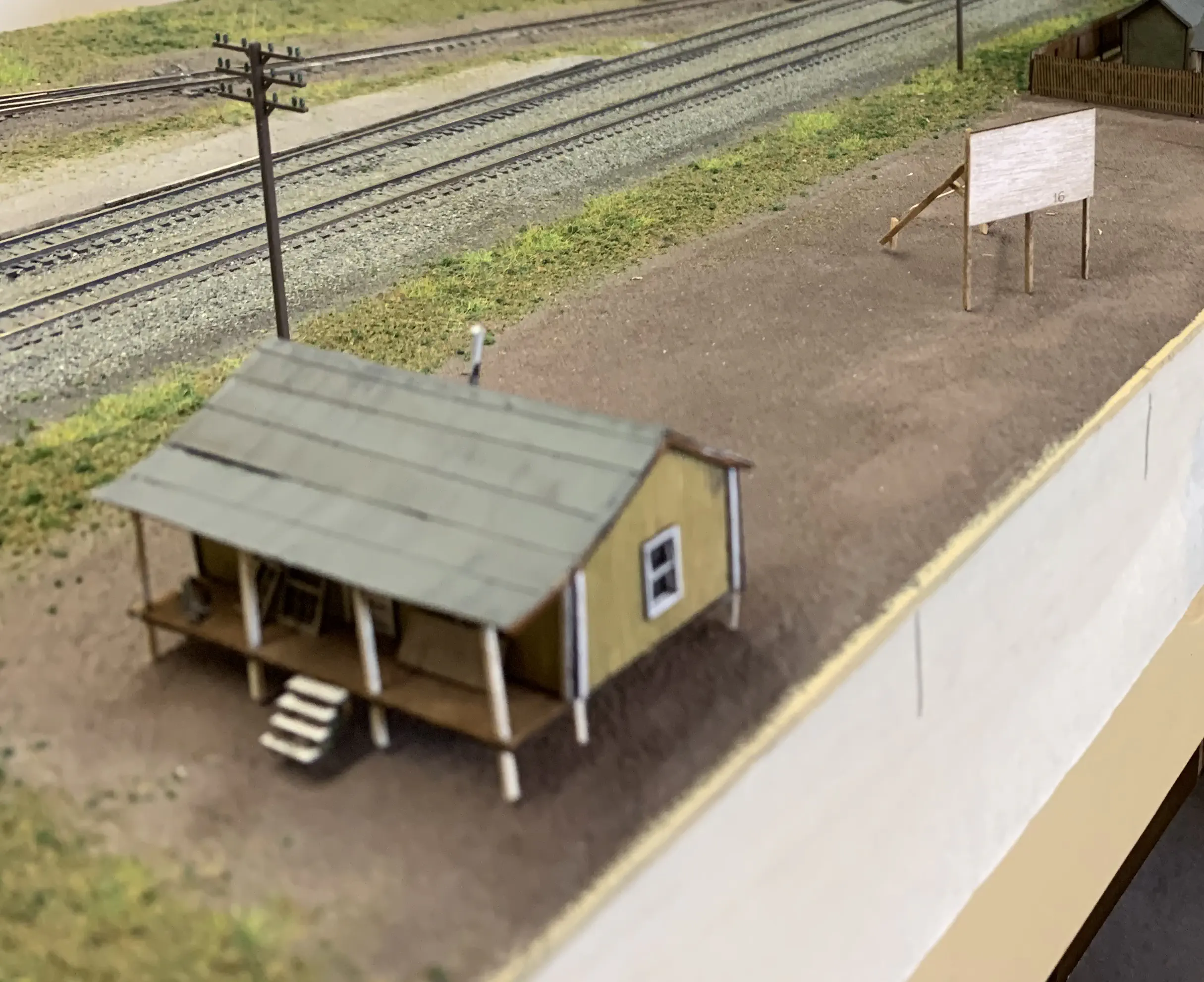 Opposite of the Cascade Depot there are multiple lots with either small business or private structures. The houses in Cascade near the railroad tracks are an interesting mix. Most of the houses are quite unique and do not repeat along the street. A few years ago I bought a few laser kits for different houses. Some of the kits either contained two or three samples of the same house or I simply bought multiples of them. So I had a good stock of parts to kit bash a nice variety of houses for my module.