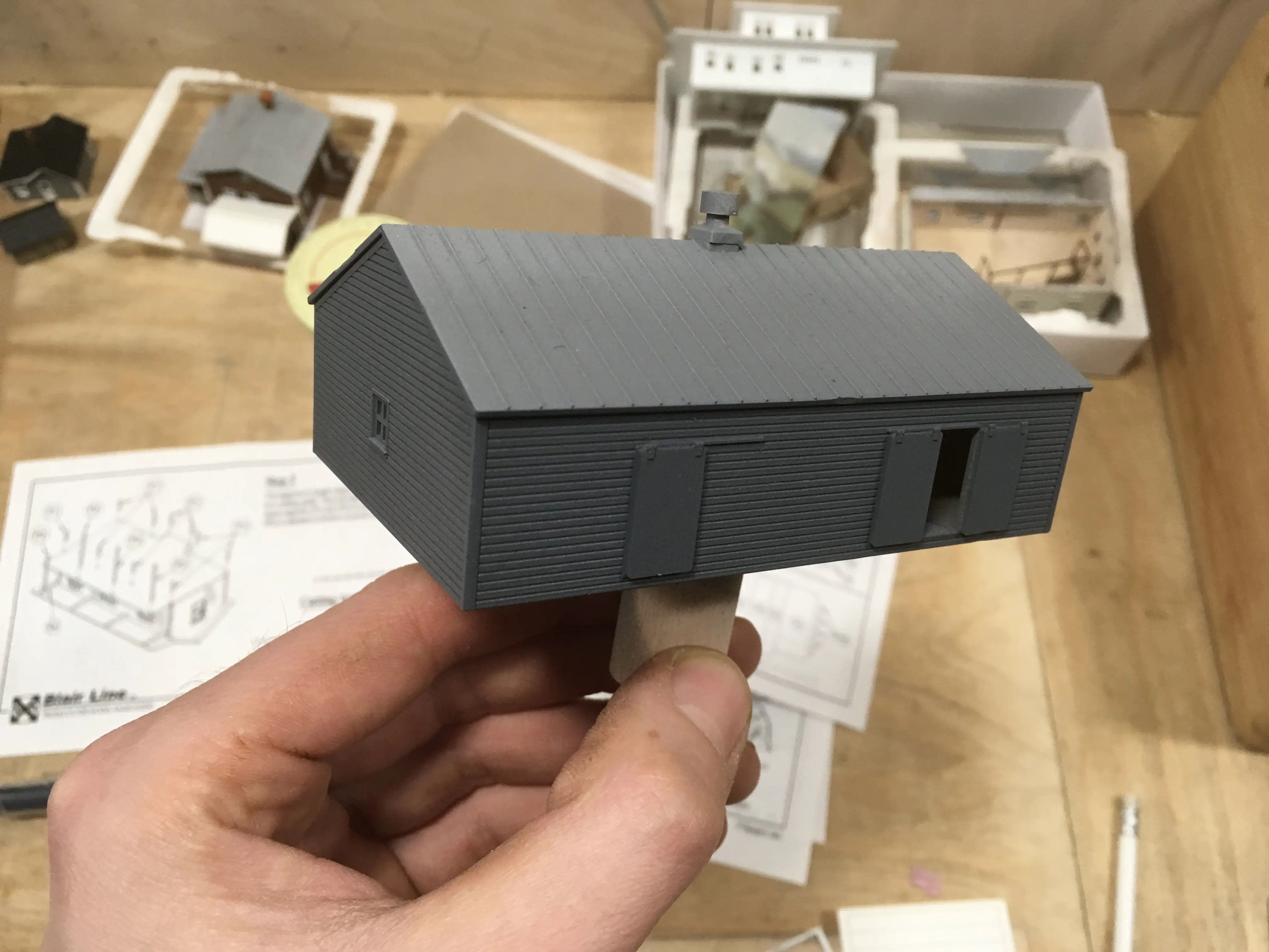 Like every second modeller, I had bought a sample of the Walthers “Co-Op Storage Shed”. I have seen it on some modules before, sometimes modified, sometimes not. I needed a ground level storage shed for a small business on my Cascade Module. Today the “Lake Cascade Sport & Marine” is located at that place. I have no Idea what has been there in the 1950s, but I chose this kit as a base to build my shed.