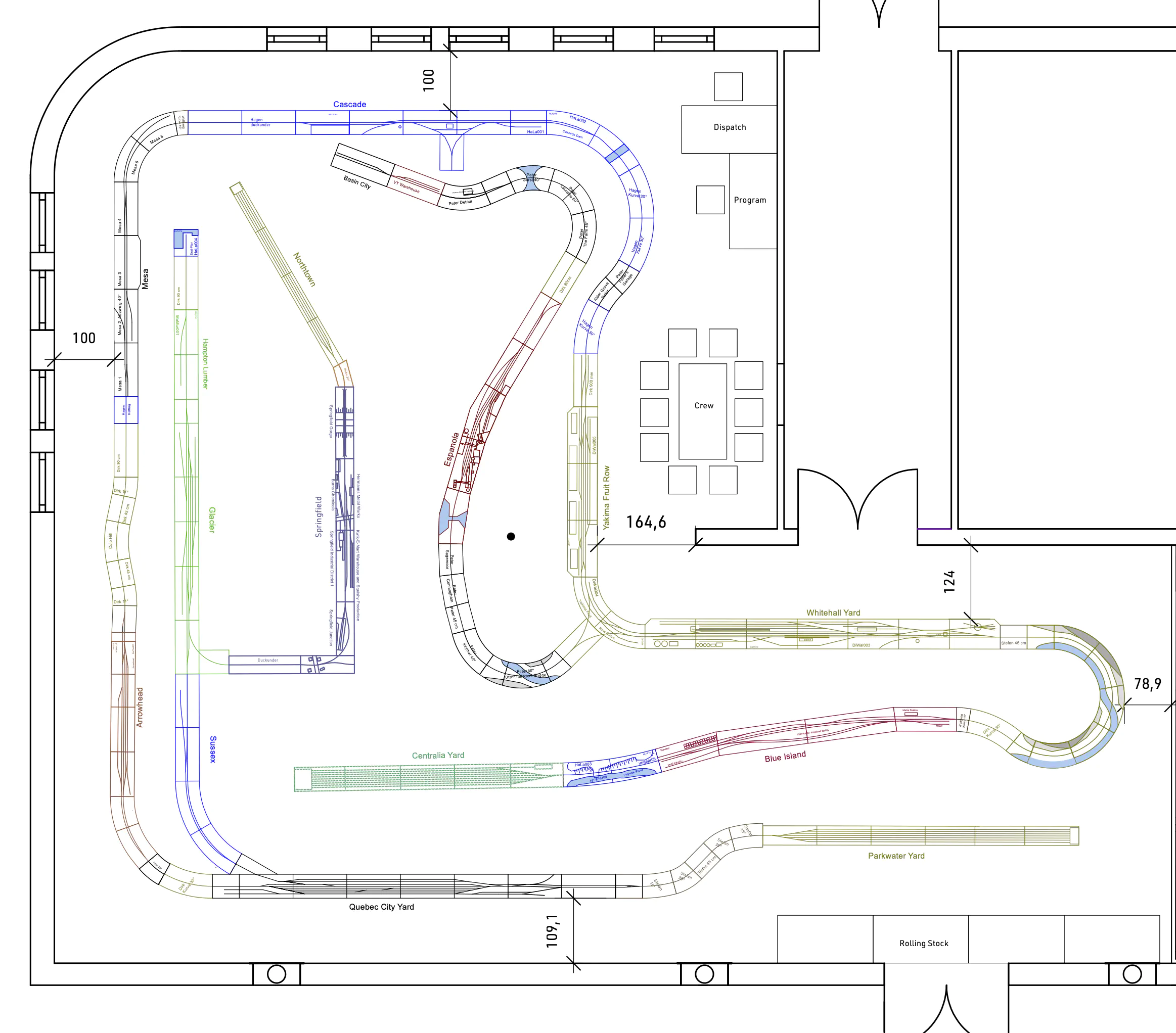 This Yard had to handle the Cascade Local and interchange cars to and from the Glacier Branch and Northtown. Somehow we miscalculated the amount of cars that had to be interchanged between the yards, which led to trains of 50 to 70 cars.