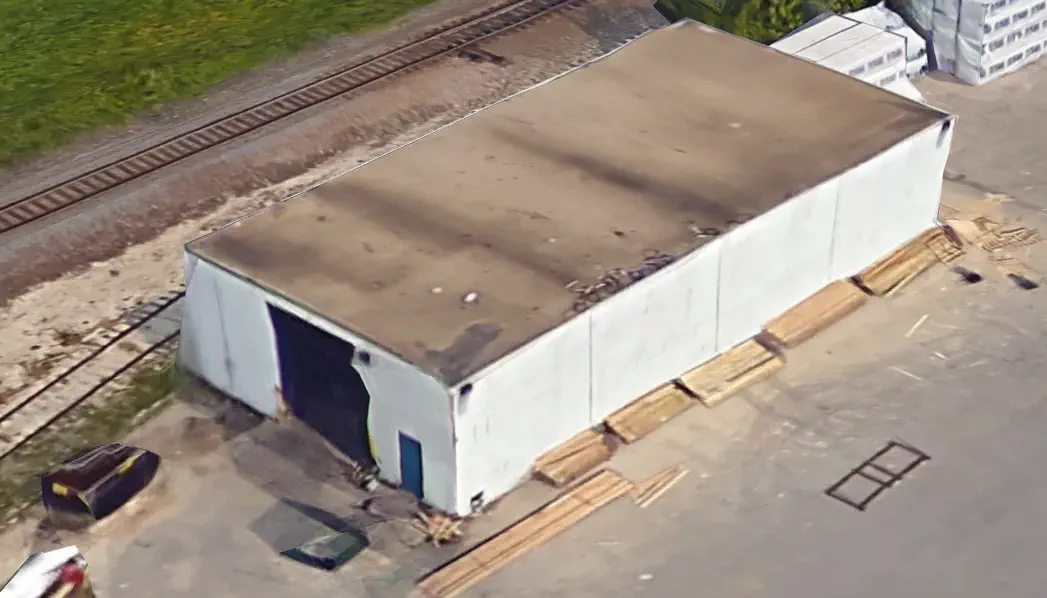 There are two buildings on the Wisconsin Building Supply (WBS) lot, that visible in the modelled section. Right behind the fence, near the WBS spur is a “small” warehouse. It has a simple shape and is not too hard to build. Only drawback: It is positioned right above the joint of two modules, so it has to be removed for transport and storage.