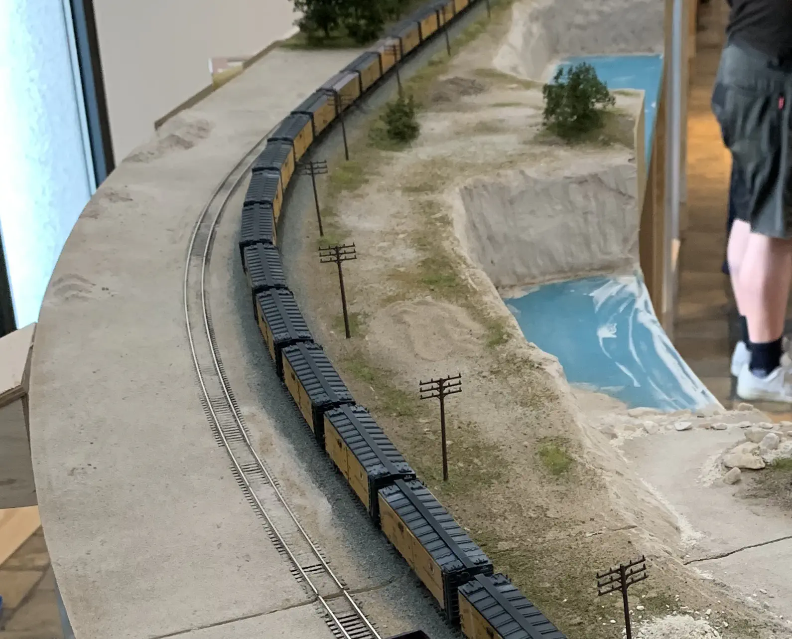 In October 2019 we want to show a layout during the US-Modellbahn-Convention in Rodgau. In the FREMO americaN group we build modules for operations. Showing the modules at an exhibition or convention is not our primary intention, but we found out that we could build an oval layout with some modules and only needed two small adapters to make it all fit. That’s what we did. Dirk extended his fiddle yard (Parkwater) to a length of six meters. Additionally he built a frame to hide the yard between to six meter long backdrops Peter created and had printed on truck tarpulin. My job was simple: finishing my six meter long module Cascade and build all required structures. No big deal ;o)